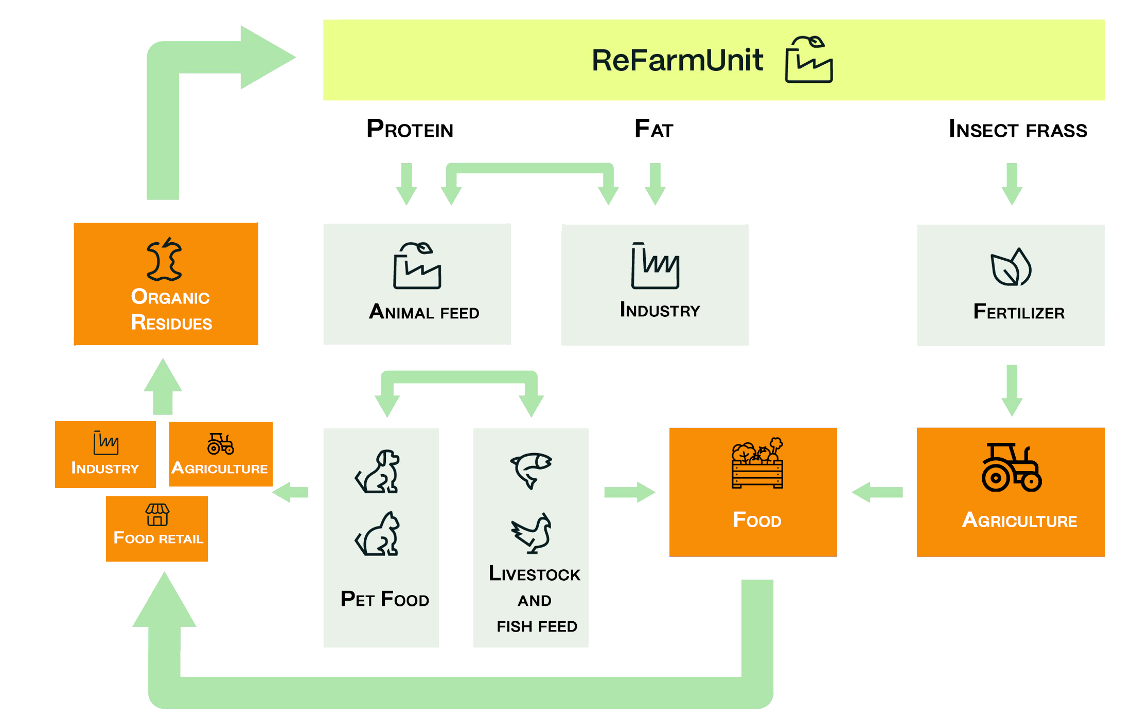 Our insect products offer an innovative alternative for the animal feed and fertilizer industry. As basis for our production, we can flexibly utilize various input materials - from fruit and vegetable peelings, pomace and marc to harvest residues and dairy surpluses.